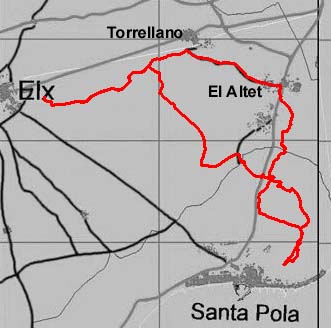 Nos juntamos como de costumbre cuando vamos por esa zona, en la carretera de Torrellano a El Altet, desde donde pasamos por el Clot y subimos por la parte de atrás de Gran Alacant hasta la carretera del Faro, para luego dar una vuelta por la zona que llaman de la cantera y regresar a la carretera y por unas trialeras bajar a la gasolinera de Gran Alacant.