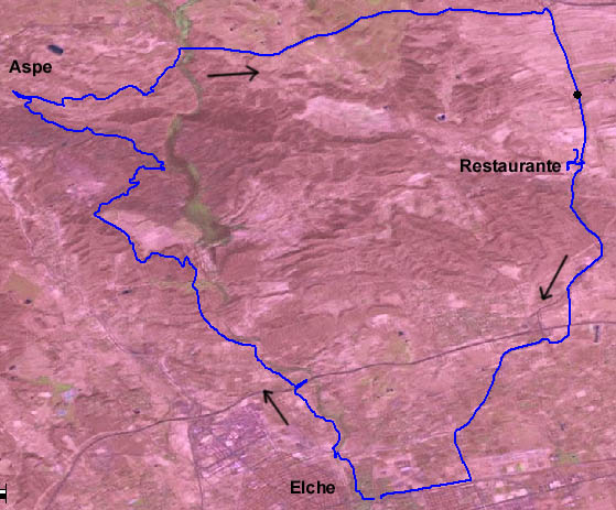 Ruta por la zona del Pantano de Elche, en esta ocasión pasamos primero por La Palmera y luego continuamos rodeando la balsa hasta Aspe, para regresar de nuevo a Elche.